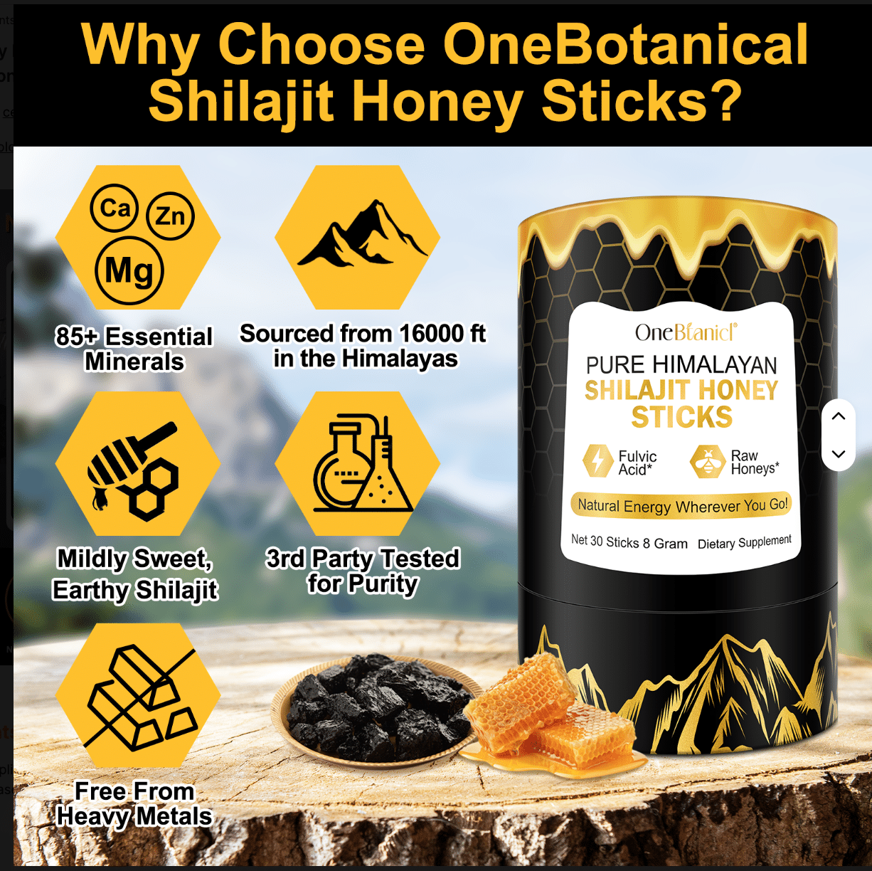 Stick de Shilajit au miel et safran, le miel et le safran combinés offrent des bienfaits pour la santé en raison de leurs propriétés énergisantes, de leur soutien immunitaire, et de leurs effets sur la cognition et la santé cardiaque. Le shilajit est un adaptogène qui augmente l’énergie et la vitalité, soutient la fonction cognitive, renforce le système immunitaire et la santé osseuse grâce à sa richesse en minéraux. Le miel possède des propriétés périodiques pour la digestion et des vertus apaisantes pour la gorge, tandis que le safran est reconnu pour ses effets antidépresseurs, anxiolytiques et ses bienfaits sur la libido et la santé cardiovasculaire.